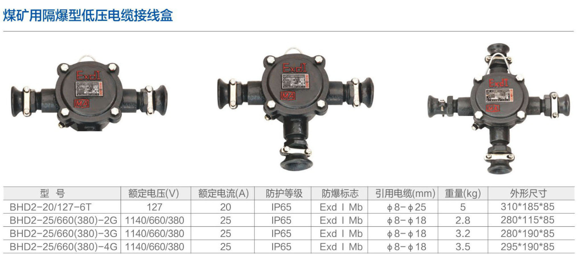 BHD2-25/(660/380)-2G/3G/4G矿用低压电缆接线盒
