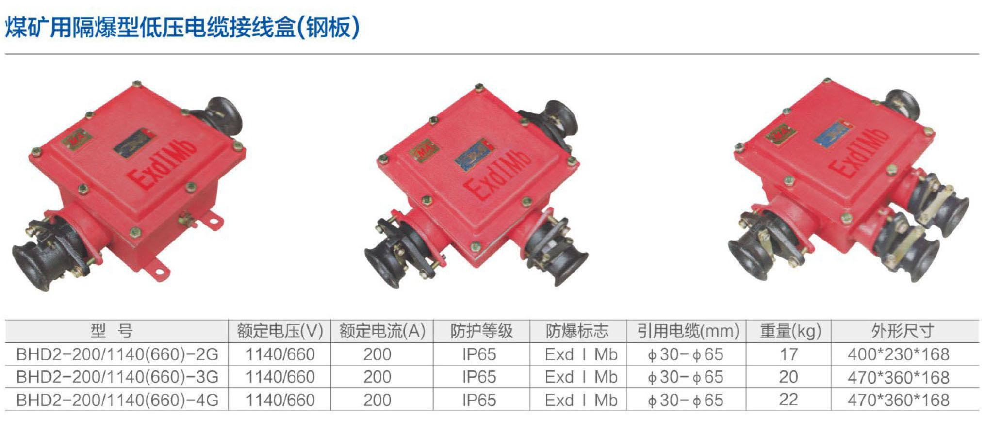 BHD2-200/(1140/660)-2G/3G/4G煤矿用隔爆型低压电缆接线盒(钢板)