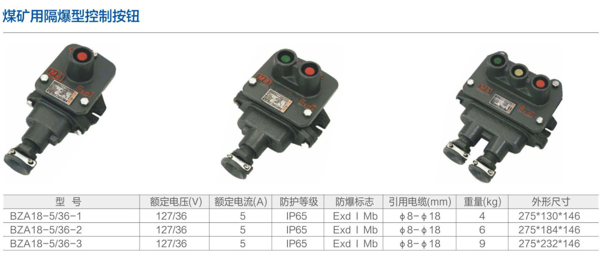 BZA18-5/36-1/2/3煤矿用隔爆型控制按钮
